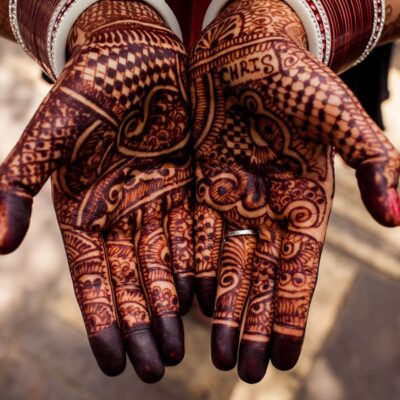 Mehandi ceremony is celebrated 2 days before wedding day. Mehendi or Henna (paste of grounded henna leaves) is applied on Bride’s hands as a good omen. Floral, and designs depicting symbol of love are drawn on hands and feet. Bride gets the henna designs applied on hands almost till elbow and on legs till knee length as per the personal choice. Henna lasts for 1 or 2 weeks. This is a ceremony for ladies. All the ladies also gets the henna applied on their hands. Pakistani, Arabic and Indian designs are in demand. There are 2-3 professional henna artists available to apply the henna on every one’s hand with a cone. With this process, songs representing love and various relations are also played along with dance among girls and ladies. Couple’s journey is also represented in the form of skits and mimicry by the close friends and relatives of the bride. You will get a chance to enjoy this traditional ceremony with delicious food making this ceremony a complete party with fun and food.